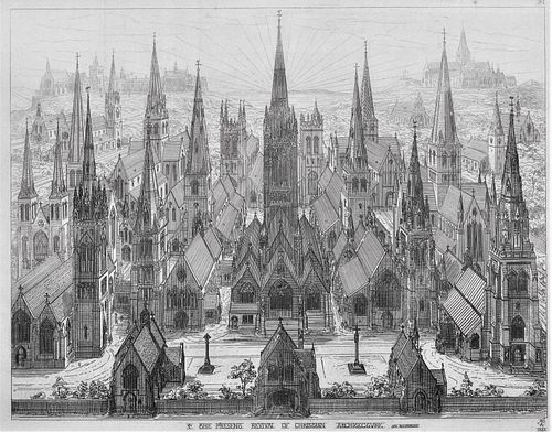 Pugin claimed that the paltry nature of modern ecclesiastical architecture was due to a lack of religious devotion – that it attests to an apathy toward the worship of God. The great cathedrals had been born of the Age of Faith, both the fruit and nourishment of the devotion of the people and the clergy. That the structures of the modern epoch pale in comparison to those of the middle ages, despite the general increase in wealth, luxury, and technological advance concomitant with modernity is, in Pugin's perspective, a damning indictment indeed.