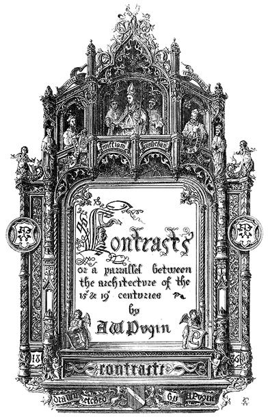 In 1836, Augustus Welby Northmore Pugin published his first book: “Contrasts: Or a Parallel Between the Noble Edifices of the Middle Ages and Corresponding Buildings of the Present Day.” It was a bold move to say the least. He was 24, and, while he had already been working as a draftsman for a decade at this point, he remained a mostly unknown architect. In Contrasts, he pictorially juxtaposed medieval buildings in all their splendor with their modern, drab equivalents, many of which were designed by some of the biggest names in architecture in England at the time – and he called them out on their principles as well as their productions.